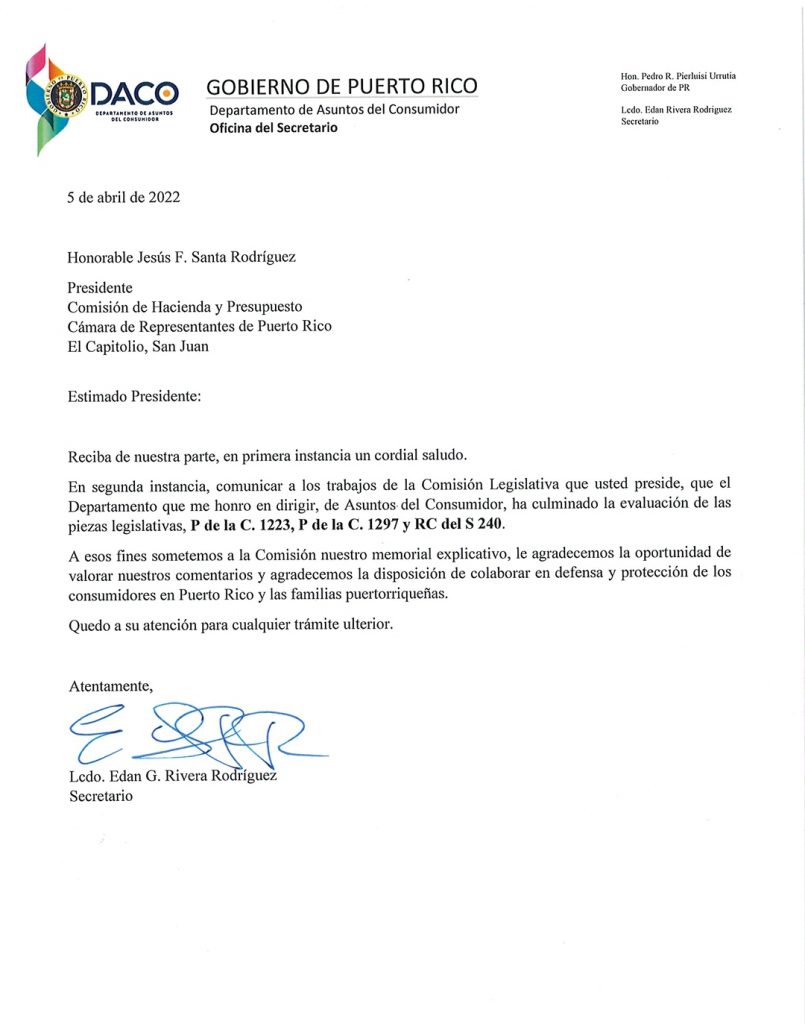 Ponencia del DACO sobre el PC 1223, PC 1297 y RCS 240